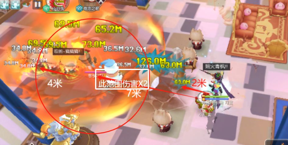 - 因此技能中心范围2米内不受伤害,因此放技能时不要把敌人圈到圆圈中心去了。