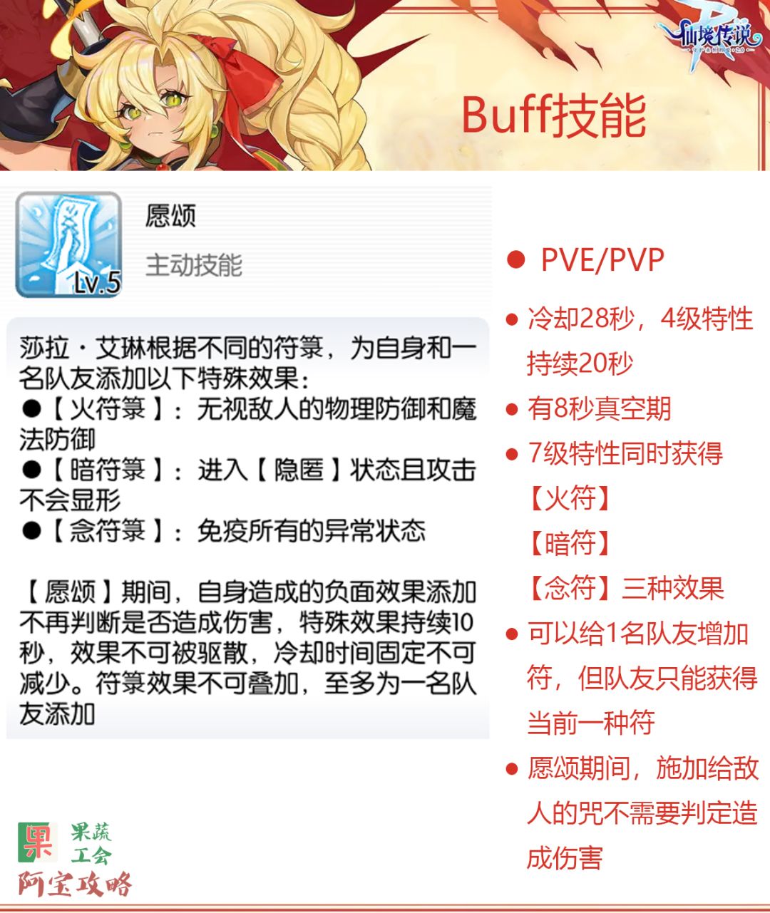 - 唯一的buff主动技能;愿颂施加的效果,本文中称为【愿颂效果】;