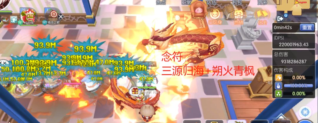 可以看到伤害不用火符伤害少了42%,DPS