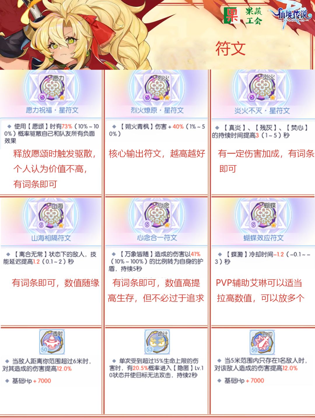 符文就不多说了,看图,7星必备,PVP的话【烈火燎原星】、【炎火不灭星】、【山海相隔】的数值都可以提高点。其他看自己实力弄。