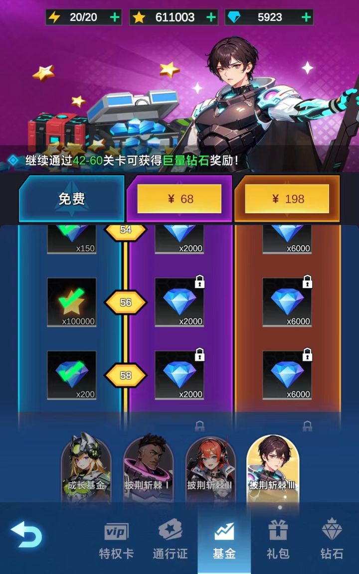2、成长基金、披荆斩棘123、无尽的航行是零氪玩家的钻石稳定来源,另外采集中心是钻石随机来源,所以零氪玩家要注意:主力培养十款飞机至少提升至60级,升星能点多高点多高,提高拉力再加个活跃团,到采集中心去抢钻石。
