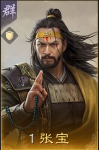 张宝,黄巾队的副输出武将,自带战法妖风大作会对敌方两人造成280%谋略伤害,并施加妖术和风暴,且敌方有妖术时此战法伤害还会增伤35%。张宝虽然在黄巾队定位是副输出,但运气好时战斗伤害比张角高。张宝追求伤害的话一般会选狂风大作+烈火焚营的组合模式,追求控制的话则可选择料事如神+断敌粮道的组合。