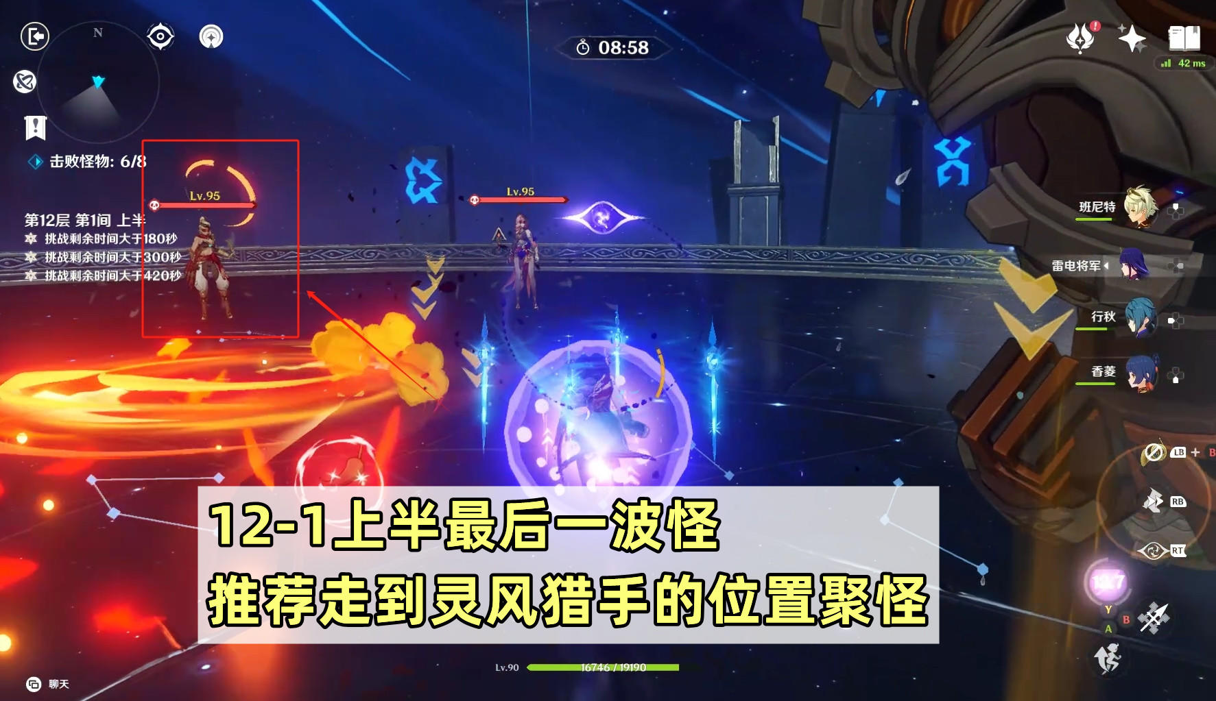 【12层难点和应对】12层上半依次是多波次的精英怪、魔偶剑鬼和半永恒统辖矩阵,后两间的boss应该不少小伙伴都很熟悉了。主要是注意下第一间最后一波的镀金旅团,推荐在她们召唤小怪的时候,跑到灵风猎手(拿弓箭的)的位置来进行聚怪。