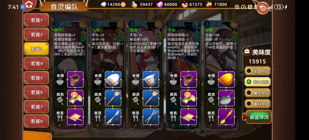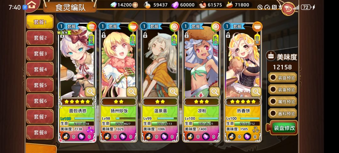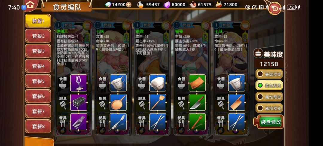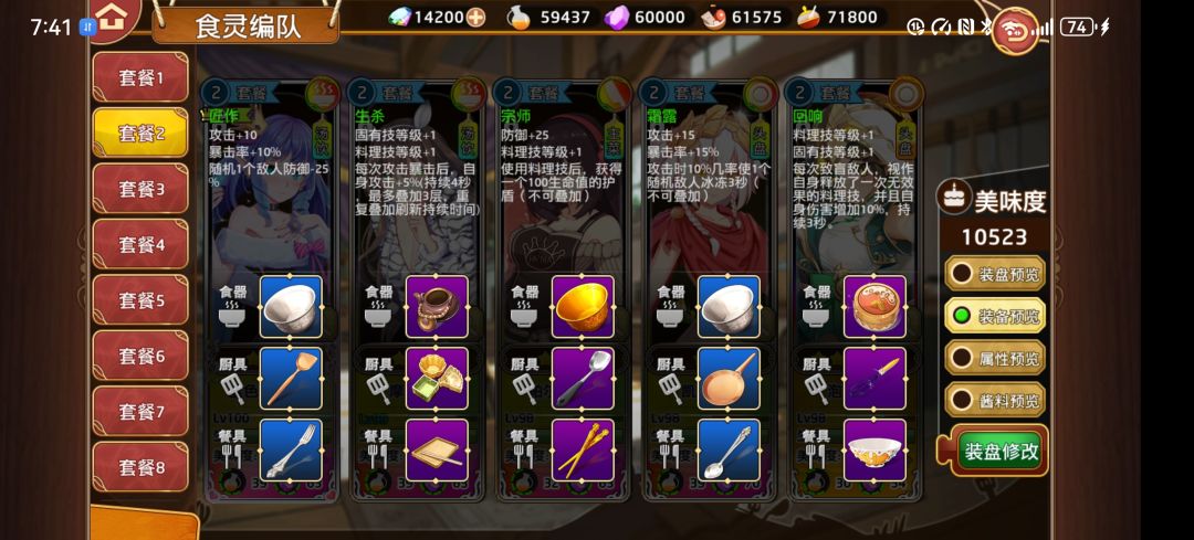 装备也要跟上,这里把休戚给了,主要是料理技和固有技双加一