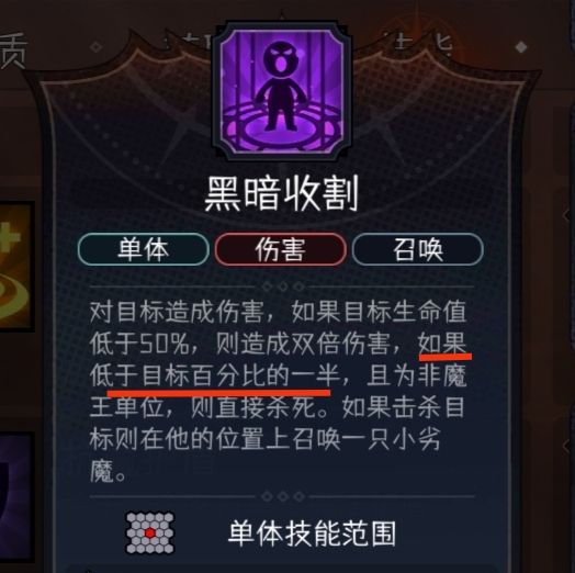 但难以理解的问题出现在,在同一段文字中,重复定义了两个完全不相干的变量为“目标”,前一个“‘目标’生命值”指代选中的敌人单位,后一个“‘目标’百分比”指代的是上一句话里的数值。