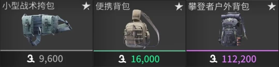 从价格上来说,小型战术挎包和便携背包是最适合新手套包的选择,海蒂商店直售!而已经小有身价的萤火虫,容量上更推荐攀登者户外背包,方便收纳更多枪械。