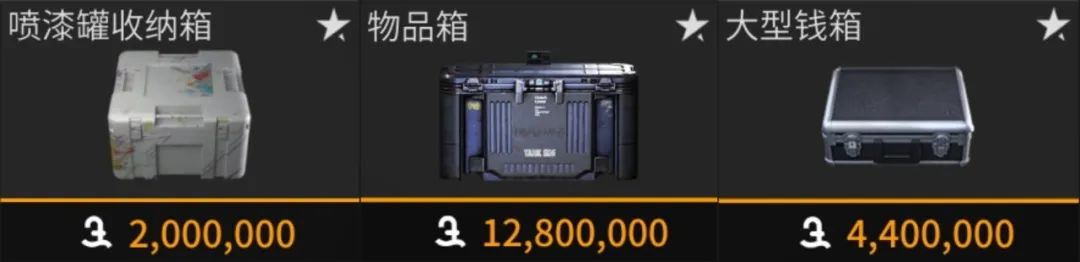 如果喷漆数量较多也可以购买喷漆罐收纳箱;镭钻箱适合在后期开放镭钻玩法后再按需进行购买。