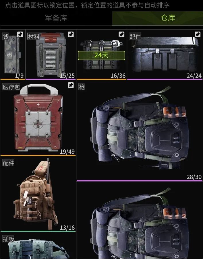 其实作战用的物资不需要大量囤积,收缴到的新枪和低级枪械完全可以寄卖或者拆解掉,留下改装好的常用枪即可。