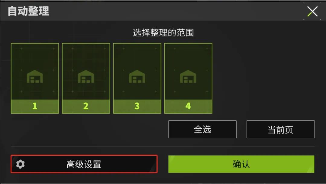 自动收纳物资到容器选择开启,相当于整合了收纳箱的一键收纳功能,会把所有能收纳的物资全部整理到收纳箱中。