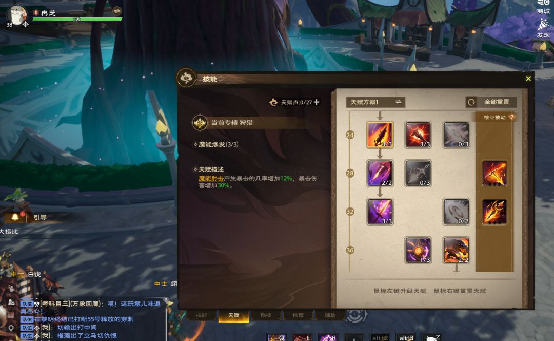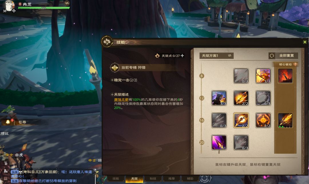 狙击:猎手之心→腐蚀之箭→迅捷连射→狙击射击→平稳射击→扩散射击