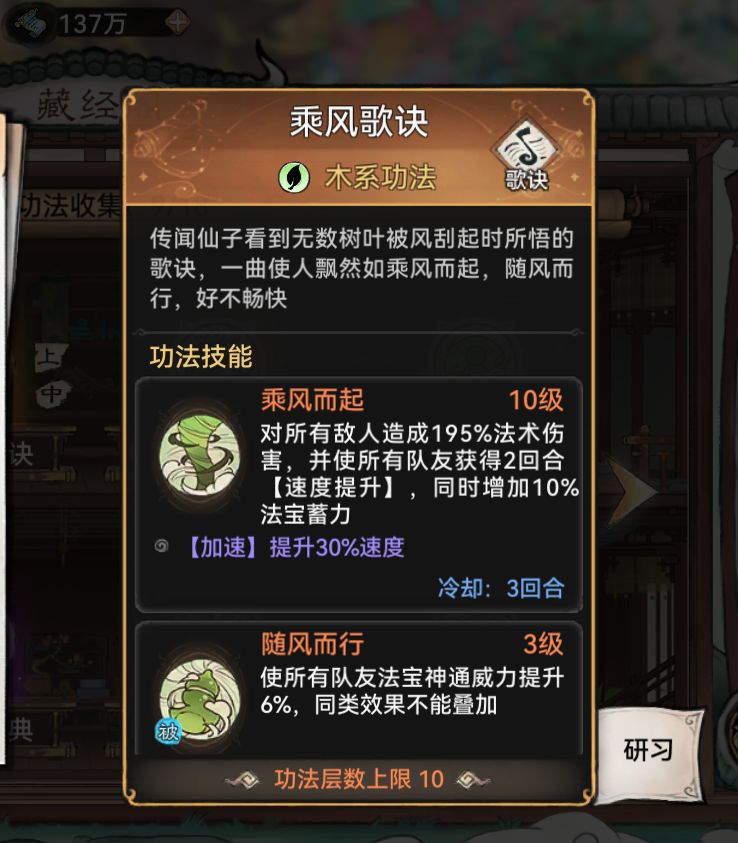 辅助加速最多的功法是好感送的灵祭咒录。强力的加速功法为司空红命购买的松风书录、论道白嫖的乘风歌诀,以及云瑶的鸣金歌诀。减速功法也很关键,这个放到后面阵容篇细说。