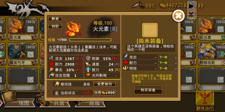 兵营一共60个位置,出战最多24个。如果想体验多策略路线,仓鼠族,多S完美主义者,格子远远不够。商店只能一个个买,目前没有10连抽。兵营没有保存队伍出场配置设置