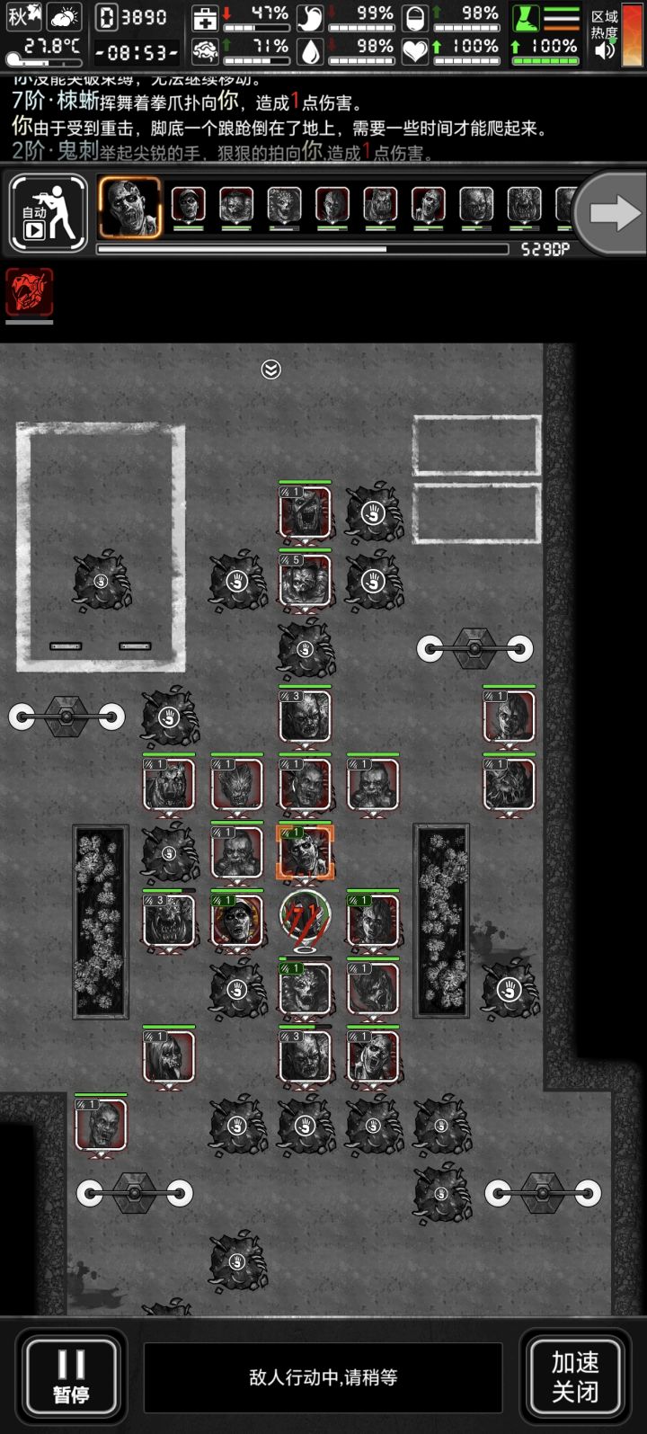 2靠边不要站中间,枪械不耗体力。被围无力。