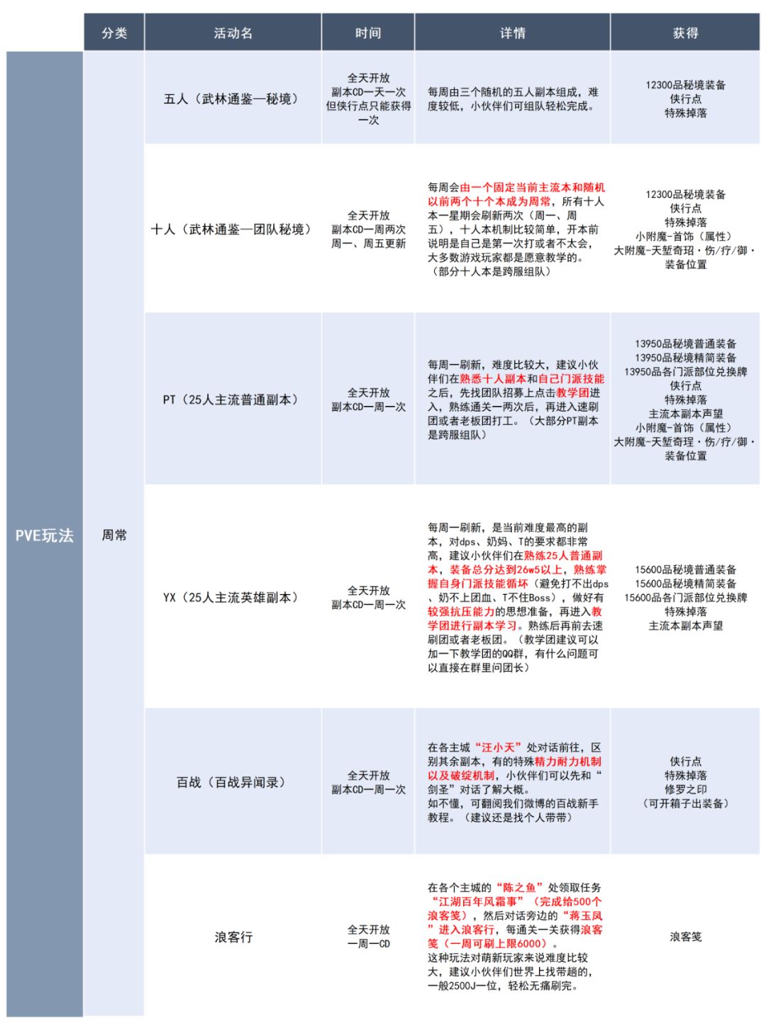 每个玩法的奖励的获得主要是装备数值的获得,会和后面的装备篇联动一起来的,所以奖励不会写的很完全!