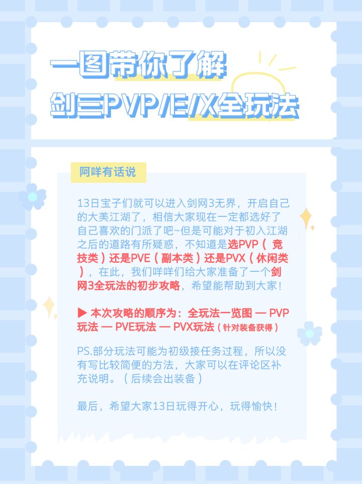 本次攻略主要是针对目前剑三主流三大玩法进行的一个入门级梳理,内容涵盖日常,日常,休闲,大家可以根据自己的需要进行查看。(由于针对新手,所以一些不用接取任务的步骤没写,还是比较偏初级)