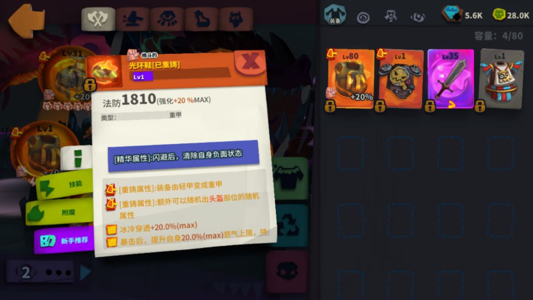 但是也不得不提一嘴,肝也是真的,比如这游戏洗重铸属性是真的贵,脸黑的重铸保底需要160k紫,96k金,120k金币😰。