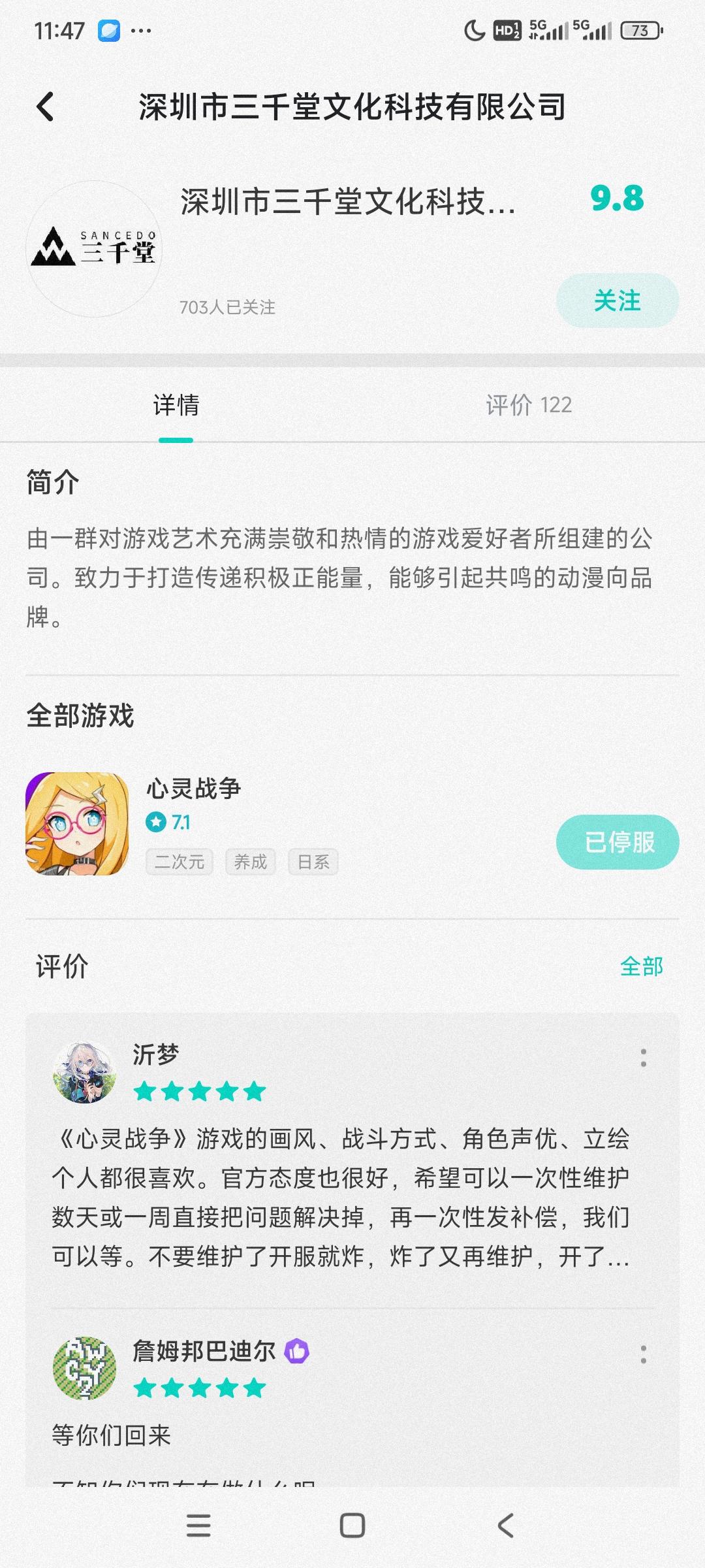 作品:《心灵战争》于2019年3月25日停服。口碑不错但因为盈利问题停服——现在去Tap的页面其实也能看到有玩家还在想念这个作品的第二部。