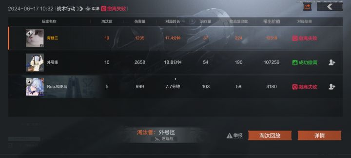 第一局,我在前往行政楼的路上淘汰了两名敌人,也如愿以偿拿到了两个身份牌,心想这一局一定可以肥肥撤离。我历经千辛万苦终于清掉了行政楼的所有人机,熟练的前往保险房摸保险,在摸保险的时候我还在想,怎么把这么多盒子以最快的速度摸完,但队友并没有给我这个机会,在我保险的时候,盒子早被队友摸完了,我想要跟队友讨要一个说法,质问他为什么要抢走我的劳动成果,但回应我的只有5个字……“关我什么事”,多么讽刺的一句话,我很愤怒但又能做什么呢,但队友似乎并不满足于此,他又看上了我身上的身份牌,他说:“你把你的身份牌给我,你慢慢搜,我要撤离了。”,我并未回话,自顾自的刮地皮。心想,怎么会有这么奇葩的人。可能是我的这一行为惹恼了他,他对我破口大骂,质问我为什么要浪费他的时间,然后就用燃烧瓶把我活活烧死。