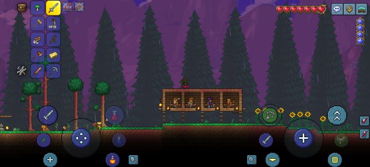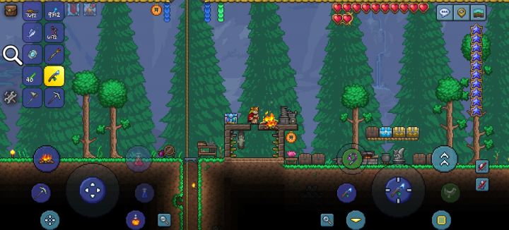 目前武器有霹雳法杖、迷你鲨、武士刀。霹雳法杖在地下沙漠洞穴的宝箱处获得,迷你鲨可在军火商处购买,武士刀则在旅商处不定期处购买。霹雳法杖在没有进入地牢之前相较于同一时期的其他法杖攻速较快暴击率高。