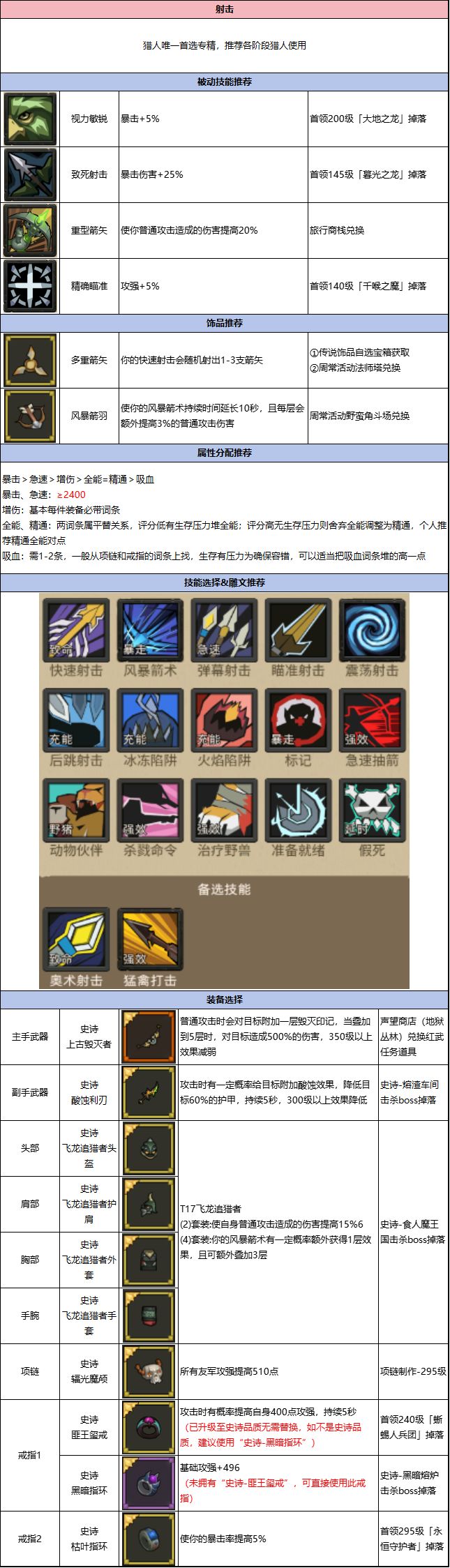 当前版本射击猎核心技能,搭配T17飞龙套+风暴箭羽饰品,强化射击猎普攻能力