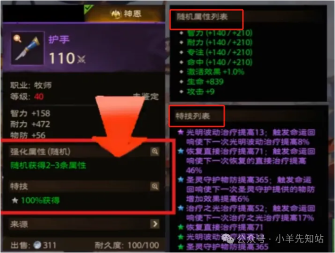 因为它在我们拿到装备的时候这两个属性都是随机生成的随机属性:输出和奶妈职业就不要选择耐力了,坦克职业不要选择攻击,也可以根据我们的天赋来搭配属性
