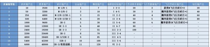 采集中心的资源产出可以说是本游戏最大的免费资源来源,高级中心有4级钻石、ssr红飞机和套装飞机碎片、sr飞行员碎片、徽章等等。每级采集中心的产出详见下文图1。