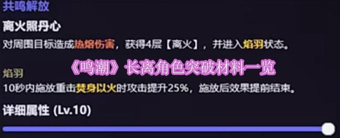 以上就是小编为大家带来的鸣潮长离角色突破材料一览,根据以上攻略相信大家都可以找到最适合自己的游戏方式,本次分享就到这里, 觉得有用的话可以收藏一下哦。