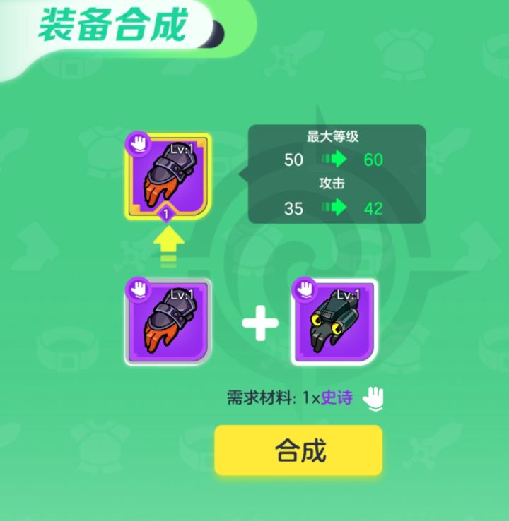 自带的一键合成会自动把装备合成为紫装,放心使用。装备重置(降品和降级)会返还所有升级材料,需要注意的是,合成跨级装备是不可逆,比如紫装变黄装后,不能再重置为紫装。