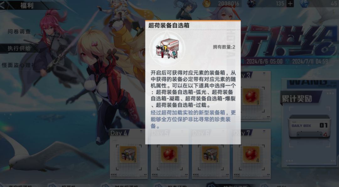 而且这次的执行供给与以往的都有点不一样,之前签到送的都是堡垒作战装备自选,这次居然送的是超荷装备自选,玩家能自选冰雷火的随机属性,相当于白送了一个能毕业的装备了。