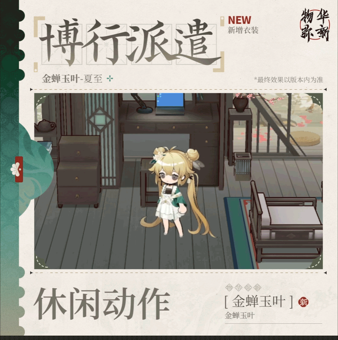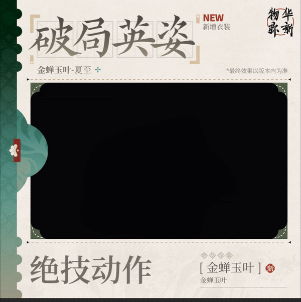 ※ 收集该衣装,即可拥有金蝉玉叶全新破局英姿、破局音效、派遣公司休闲动作。