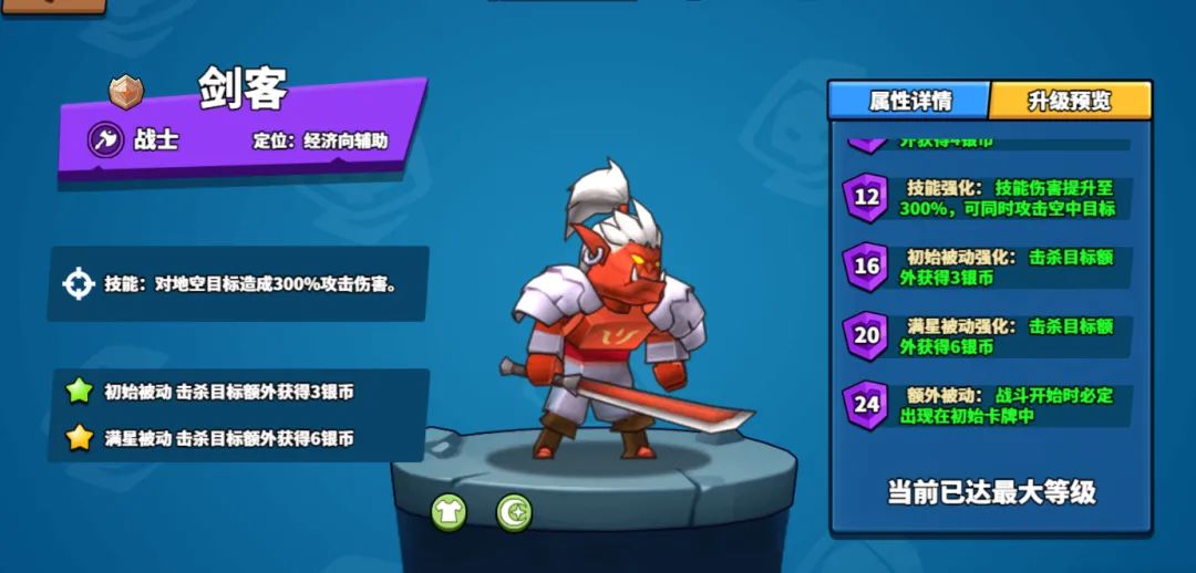 3、解锁剑客24级天赋:【额外被动】战斗开始时必定出现在初始卡牌中