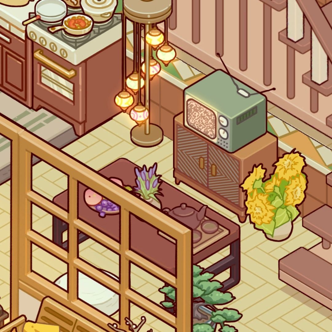 入户是一个小客厅,老式的电视机配矮桌坐垫,(类似小丸子家那样)