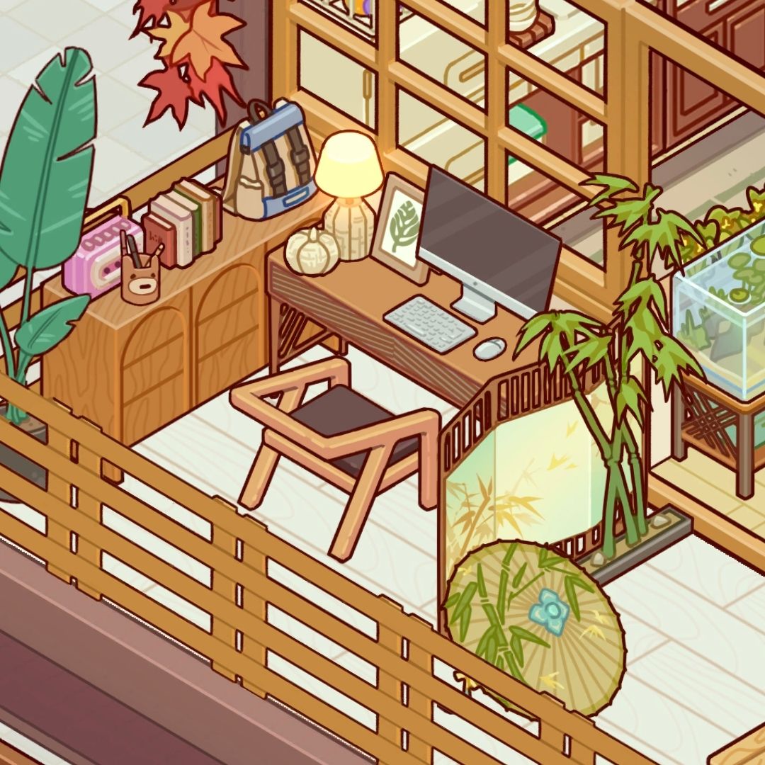一楼阳台是书房和一个休闲区,喝喝茶什么的