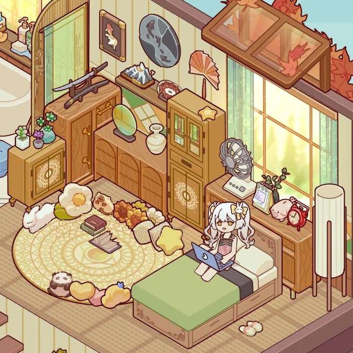 榻榻米上摆满了可爱的抱枕,休息的时候趴着看看书啥的也很享受
