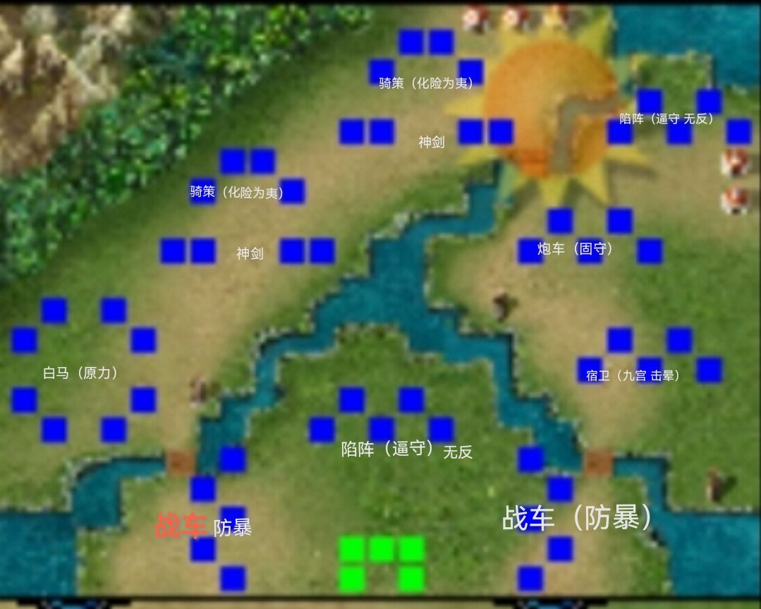 后续按如图所示行军,优先清理骑策和陷阵即可。