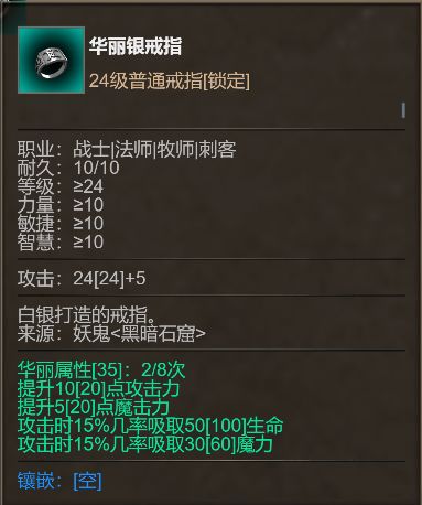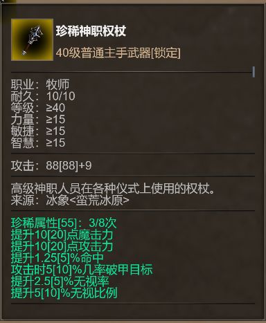40级物品:40级本职业稀有主手武器 稀有黄金戒指
