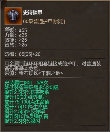 55级物品:60级本职业史诗铠甲 圣灵之魂+1x5
