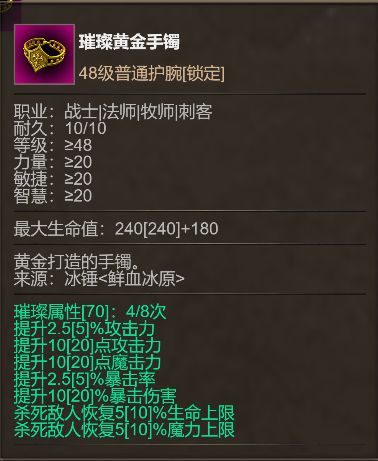 50级物品:48级璀璨黄金手镯 精力药水x1