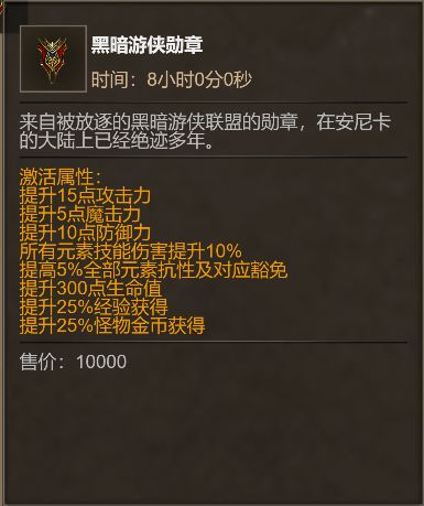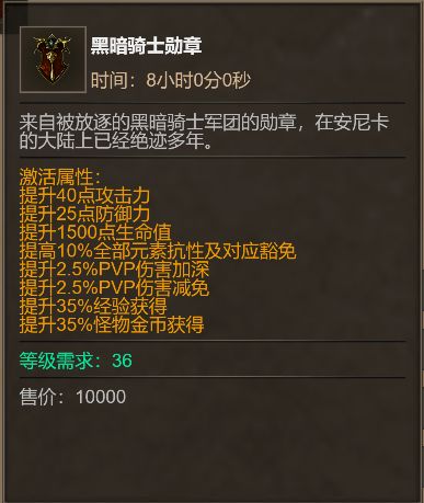 45级物品:45级本职业稀有副手武器 黑暗骑士勋章