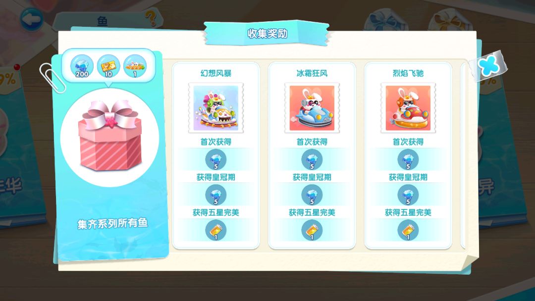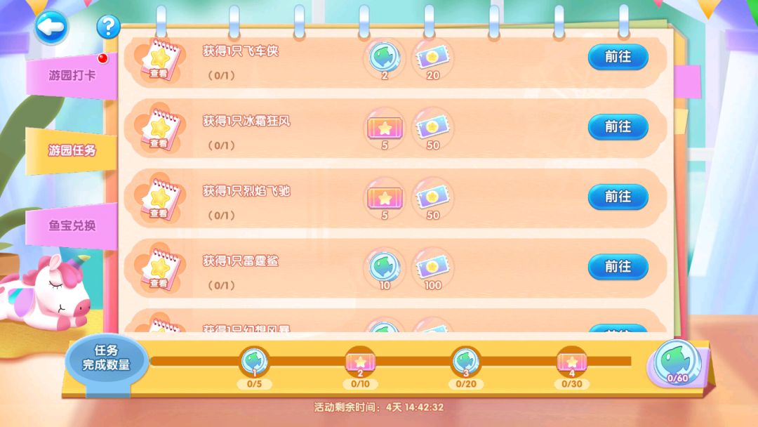 解锁任务数量还能同步领取萌鱼币(用于盲盒抽奖机抽奖)、扭蛋券等道具哦!