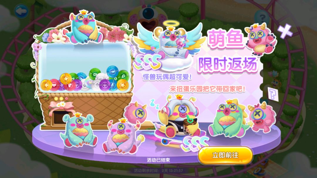另外25日将开启扭蛋限时返场,快到扭蛋乐园把小怪兽萌鱼带回家啦~