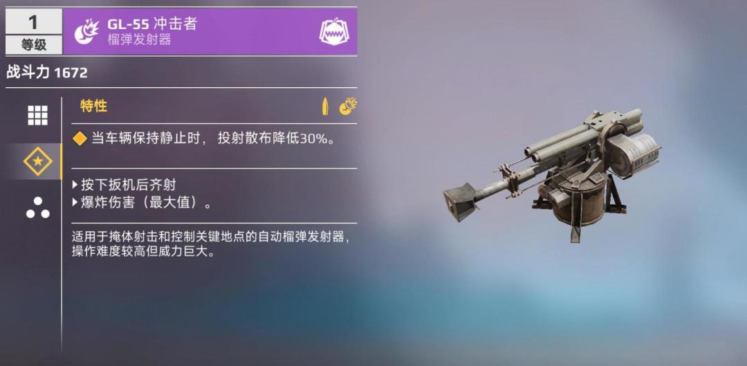 在《创世战车》移动版中,目前榴弹发射器的种类丰富,共有5款供玩家选择。每位工程师在拾荒者等级达到40级时,都有机会接触到入门级的榴弹发射器——“GL-55冲击者”。