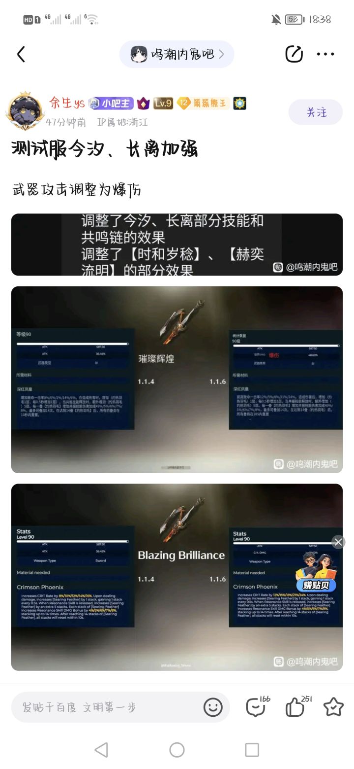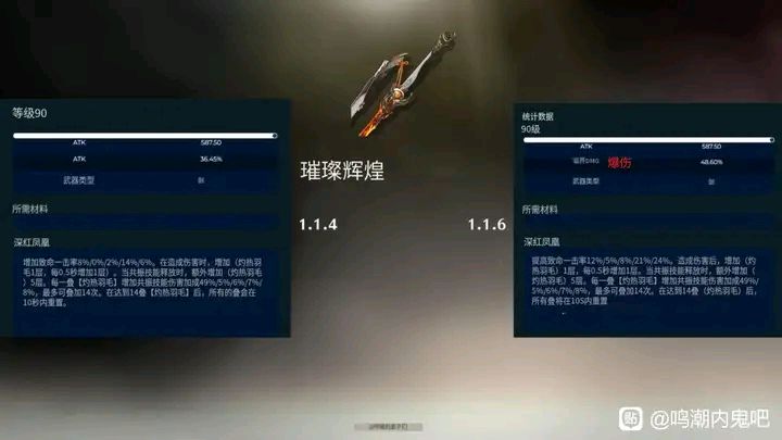 长离专武副词条由攻击改为暴击伤害,专武被动增加的暴击率改为攻击百分比,由8%提升为12%,5阶为24%