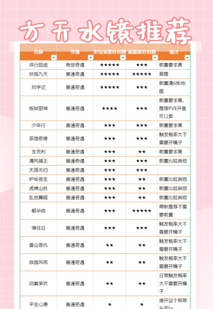 方天水镜奇遇推荐附奖励预览