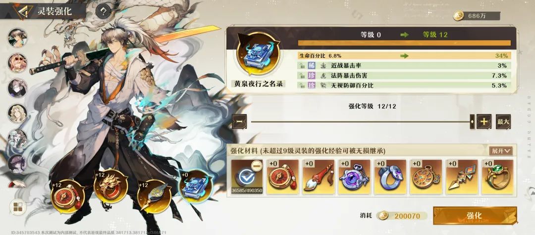 消耗强化材料提升灵装等级,已强化灵装作为培养材料时能够完全继承9级以下的经验,超过9级的部分会以一定比例折算。
