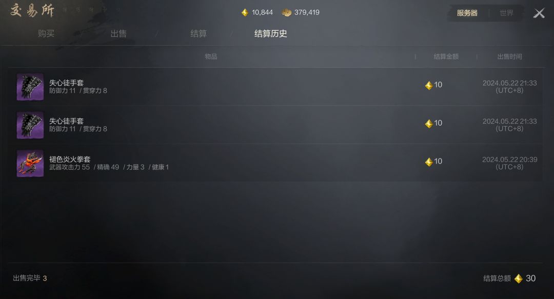 结算历史中,能看到已出售的道具,物品详细信息、结算金额、出售时间这些都有标记,方便后续查看记录。结算页面中点击领取才能在结算历史中出现,结算页面功能简洁清晰,查阅起来速度很快。