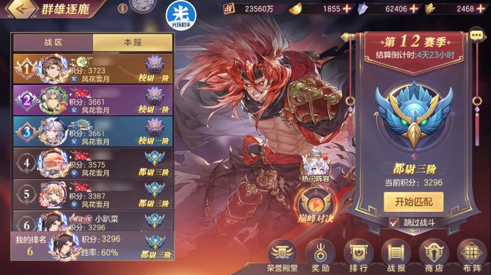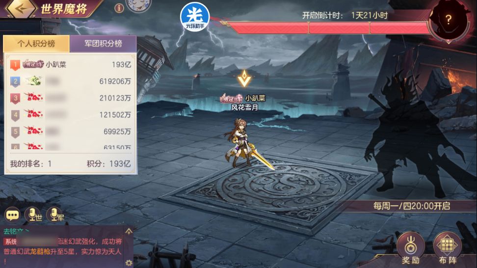 刷分还是挺不错的。可惜头像框需要军团战区化的世界魔将排名第一才有。