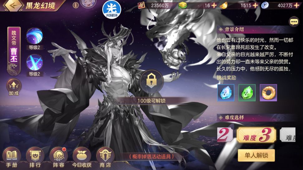 黑龙幻境至少要解锁难度3才有蓝色战灵。