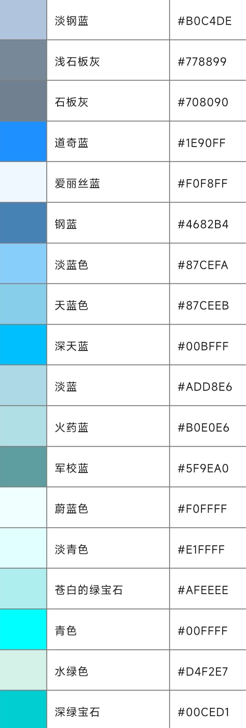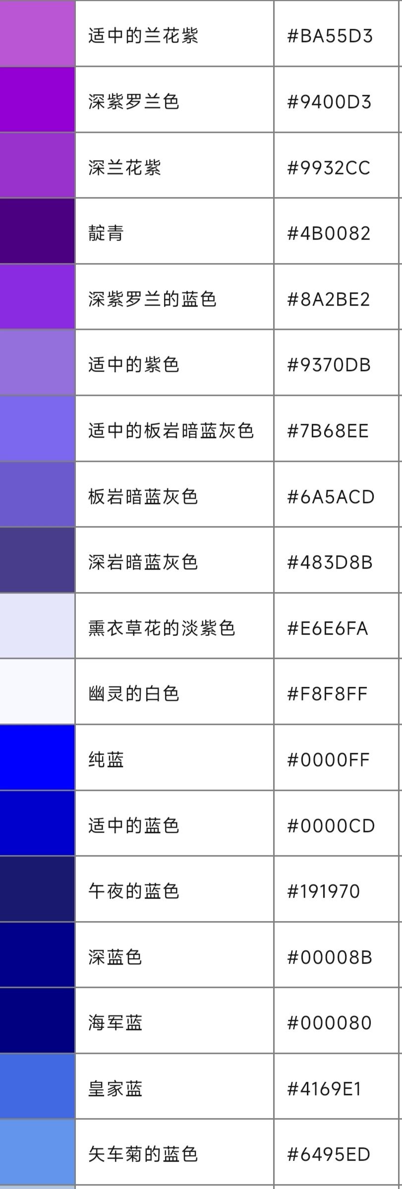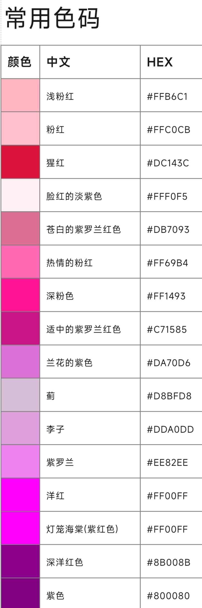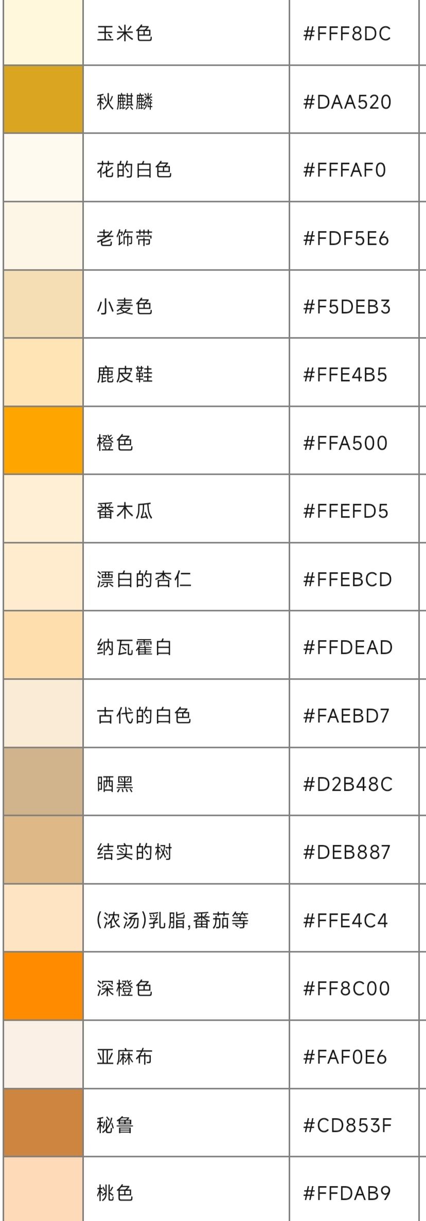 ①百度可以搜到颜色代码大全(井6位字符)