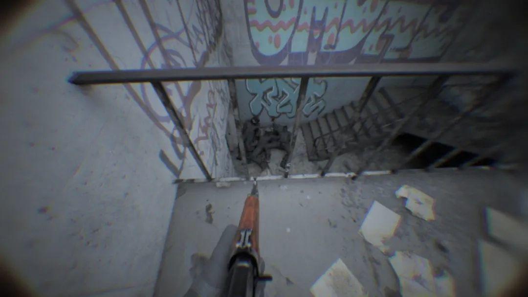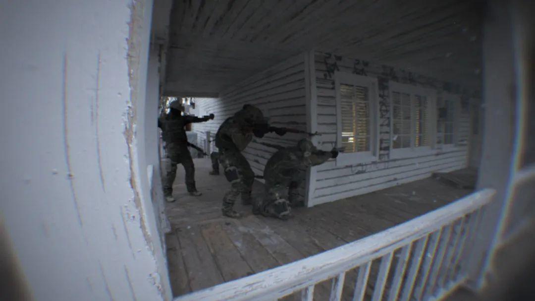 例如,游戏是通过鱼眼头戴摄像机的视角看出去的;而且所有的人物面部都做了模糊处理,避开人脸展示;此外,游戏在角色的行走、瞄准、呼吸和举起武器的方式上下了大量功夫,让整个姿态更像是真实人类的反应。